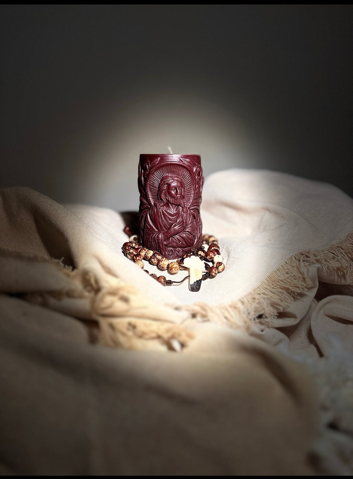 Invite faith, intention, and gratitude grounding into your home with our Sacred Jesus Candle™ — a richly detailed, hand-poured devotional candle. Crafted in a deep burgundy tone that adds elegance and depth to any space.